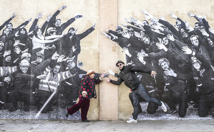 Como os dois referem no início deste road movie, o que é realmente inesperado neste encontro foi não ter acontecido mais cedo. Varda já conhecia o trabalho de JR e apreciava a forma como ele retratava os mais velhos; por outro lado, Mur, Murs, o documentário que realizou sobre a arte urbana de Los Angeles, teve um enorme impacto em JR, conhecido pelas suas obras em grande escala onde cola retratos gigantes em fachadas e outras superfícies semelhantes. É então a partir desta “amizade à primeira vista” que nasce a ideia de um filme, construído a dois, sobre as “aldeias, paisagens simples, pessoas”. Na carrinha mágica de JR, uma espécie de photomaton com rodas, o duo parte à procura de desconhecidos cujas histórias de perseverança mantêm viva a identidade da França rural. Estes homens e mulheres tornam-se os protagonistas de cada capítulo do documentário, e os seus retratos são transpostos para as paredes de casas, fábricas ou contentores, vestindo o espaço público de humanidade e esperança.